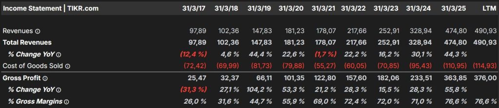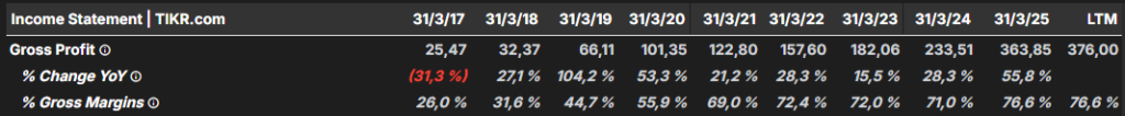 Aunque el producto mostró muy buena tracción desde el principio, su impacto no empieza a reflejarse en los números de la compañía hasta un par de años después. De hecho, si prestamos atención al Income Statement, podemos observar cómo un negocio que estaba prácticamente plano comienza a incrementar ingresos y a expandir márgenes de forma significativa.