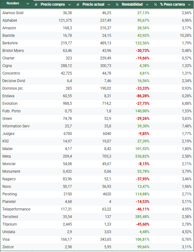 Y hay otras que han caído bastante y, además, eran en su día las posiciones más grandes de la cartera; aquí es donde las pérdidas no realizadas son mayores: