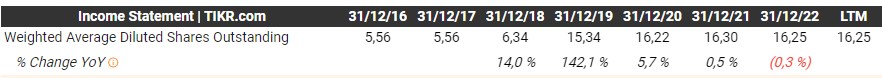 El número de acciones permanece prácticamente constante desde su salida a bolsa en 2019. Conociendo a la directiva es de esperar que así sea.